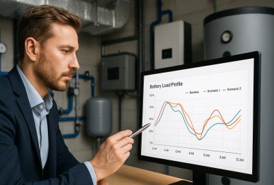 The ecoBuilding simulations showed us exactly which battery capacity type we had to use in combination with the available connection capacity.